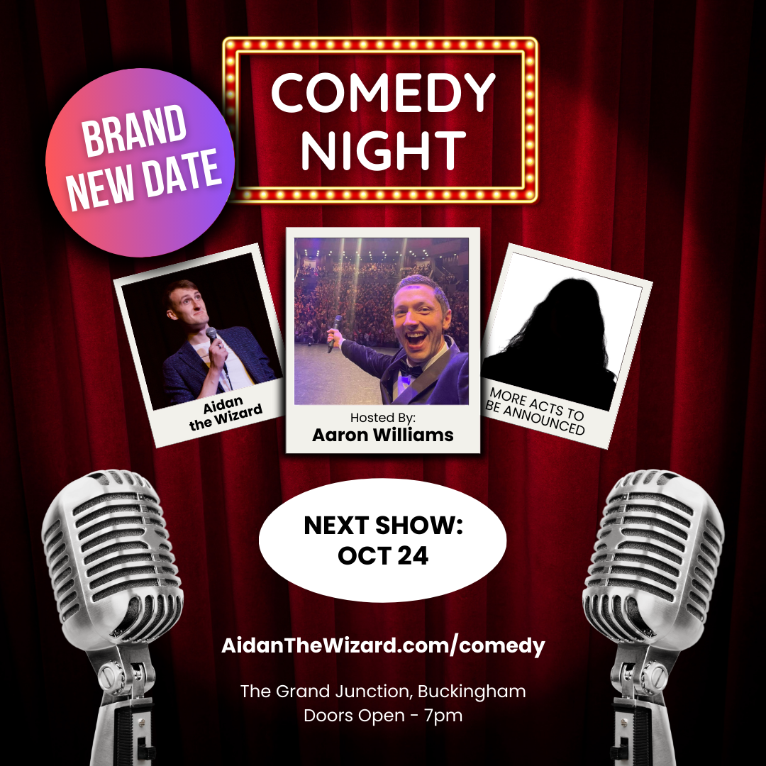 Whether you’re a seasoned comedy fan or just looking for a fantastic night out, join your resident wizard, Aidan, and rising star on the comedy circuit, Aaron Williams, for a side-splitting evening of laughs.